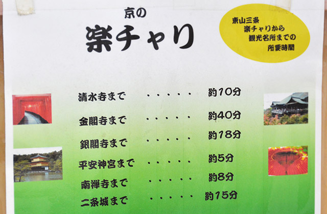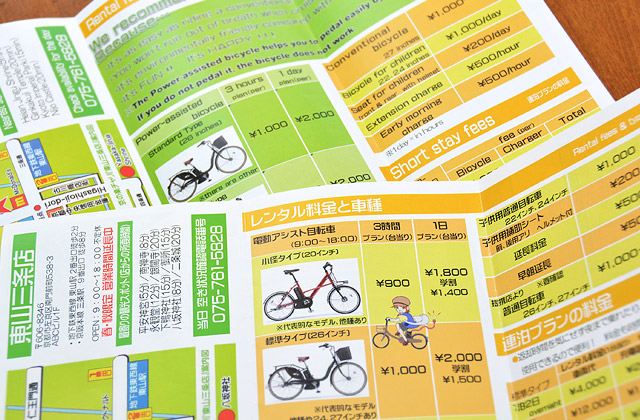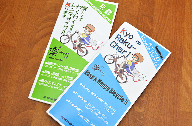「京の旅をもっとわくわくドキドキさせるためのサポートショップ」として2007年8月にオープンした京都初の電動アシスト自転車専門のレンタサイクルショップ(お客さまのご要望を受け、現在は普通自転車も用意)。