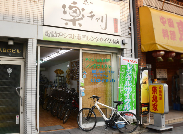 自転車貸し出し業務ではなく、京都の旅を楽しくするツールを提供するために電動アシスト自転車専門のレンタサイクルとして8年前にスタートを切った京の楽チャリ様を訪ねました。