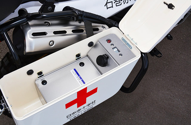 「バイク救護隊」が2016年3月に正式に結成されるまでは、病院のバイク部を中心に、有志が自家用車を持ち寄って活動していたそうです。しかし排気量や車種によっては、乗り手を選ぶモデルも。そこで今回二輪車を導入するにあたり、災害時など車では入って行けない悪路を走行することを前提に、まず走破性の高さを重視して、オフロード車両に絞り込み。さらに普段からバイクに乗り馴れていない人や初心者でも安心して乗れるよう、比較的足着きが良く軽くて取り回しやすいフレンドリーな車両として「セロー250」に白羽の矢が立ったそうです。