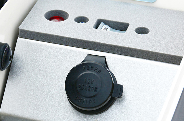 電源装置にはシガーソケットやUSBジャック(非付属品)をさせるので、無線機や衛星電話などの電子機器が接続できます(電源はメインバッテリーを使用)