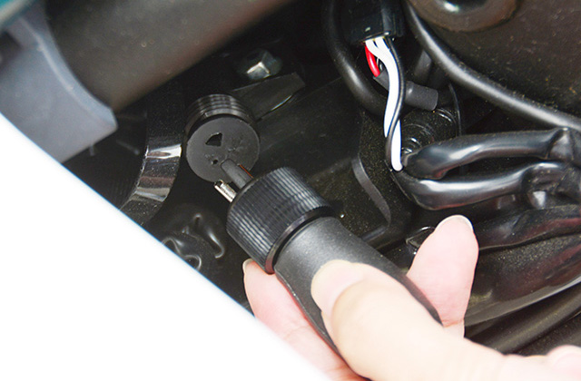 右サイドバッグには、メインバッテリーが万が一上がってしまった場合でも始動できるようバックアップ電源装置を搭載