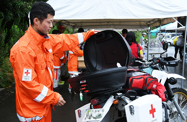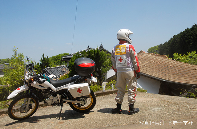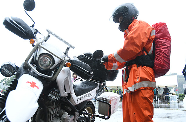 「搬送されてくる要救助者を病院で待ち受けているだけでは、助けられる命も救えません。東日本大震災の時、警察の人も消防の人もみんな被災者でした。全身真っ黒になって救援活動にあたっていた消防隊員の姿が今でも脳裏に焼き付いています」と話すのは、この春、石巻赤十字病院で結成された「バイク救護隊」の発案者のおひとり、看護師の高鷹秀一さん。東日本大震災時、まったく情報が取れなかったことから、石巻赤十字病院では、医療・救護チームから積極的に情報を取りに行くための手段として機動力の高い二輪車を導入しました。