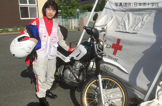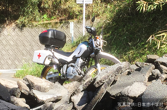 3月に「救援セロー」が導入された直後に起こったのが熊本地震でした。石巻赤十字病院では、「東日本大震災で得たノウハウを生かして救護活動に取り組み、たくさんいただいた支援の恩返しをしていきたい」と救護班を即時派遣。「救援セロー」も一緒に現場に送られ、現地の災害対策本部で情報収集や物資輸送に活用いただきました。