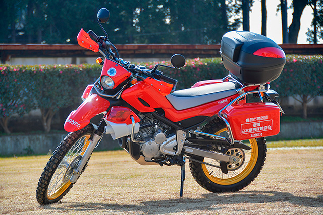 日本損害保険協会の寄贈用機材として「セロー250」ベースの「消防活動二輪車」が