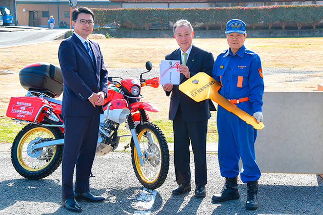 万が一の際には、その性能をいかんなく発揮して、地域の安全・安心のために少しでも役立つことを期待しています。これからも『消防活動二輪車』を消防資機材の一つとして、導入先のニーズに合わせて寄贈することを検討してまいります」