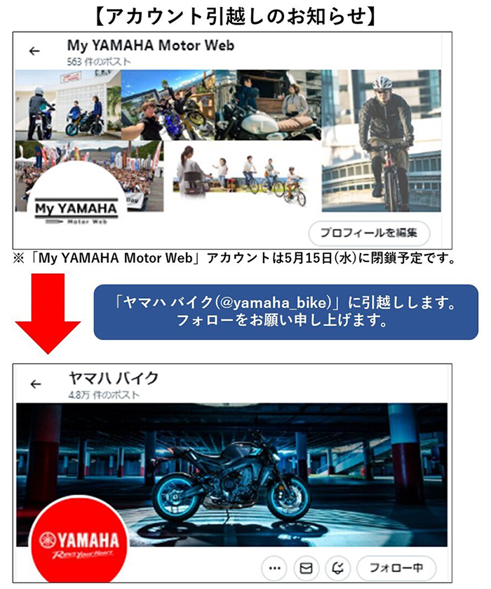 「My YAMAHA Motor Web」 X公式アカウントは「ヤマハ バイク(@yamaha_bike)」に移行しますのでお知らせいたします。
